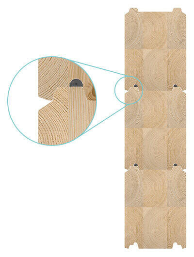 Using the SmartLog™ system, pine lamellas are glued crosswise under high pressure. This creates engineered logs with exceptional dimensional stability that do not settle, allowing for modern architectural designs with glass and stone.